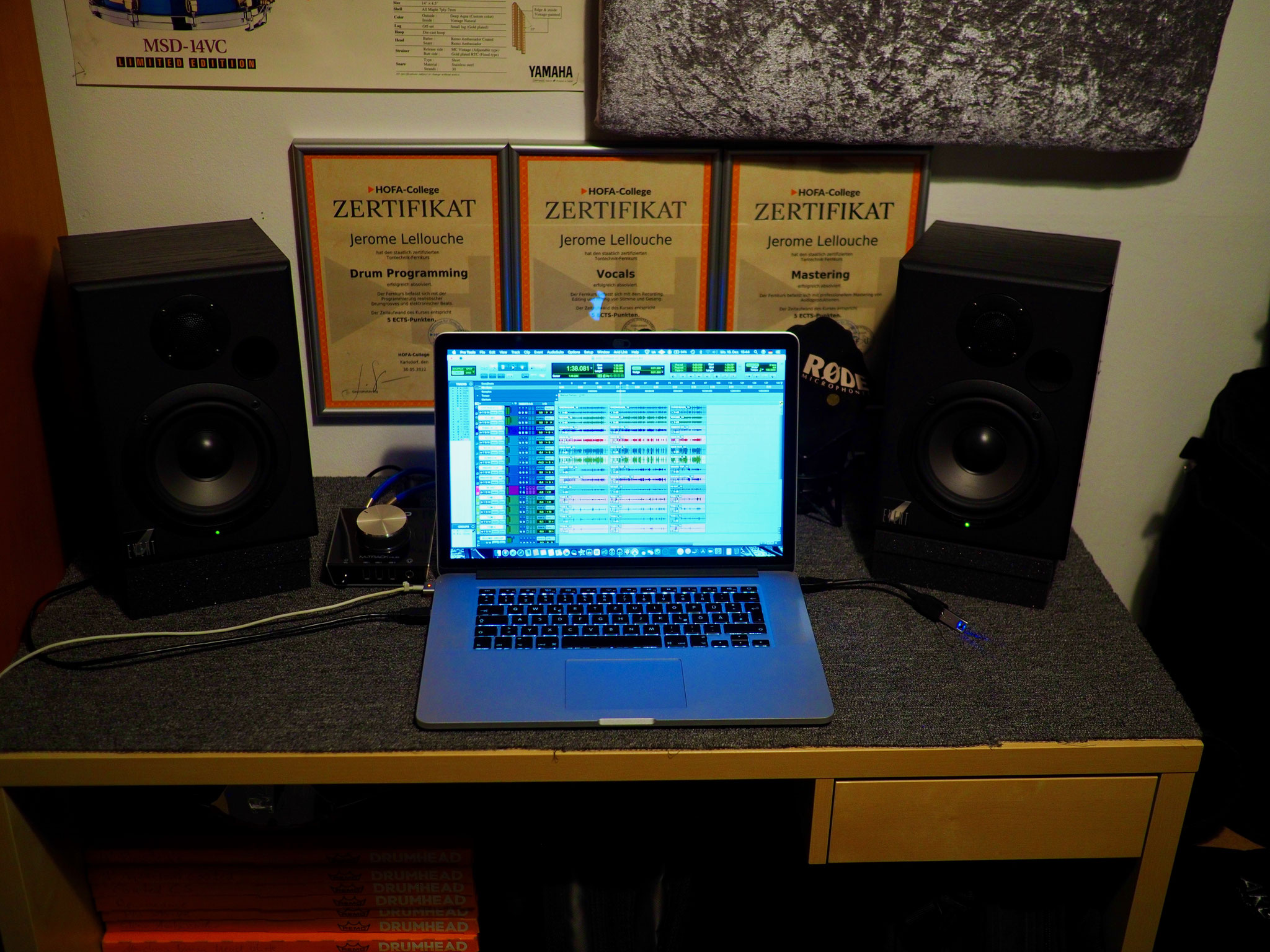 In his studio in Hamburg, Jérôme is able to record remote drum tracks with a fully mic'd drum set as well as engineer them himself. Here are some pictures of the the studio and some demos of how the drums could sound on your track: